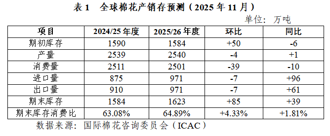 1.2025/26年度全球棉花供需關(guān)系呈寬松態(tài)勢
