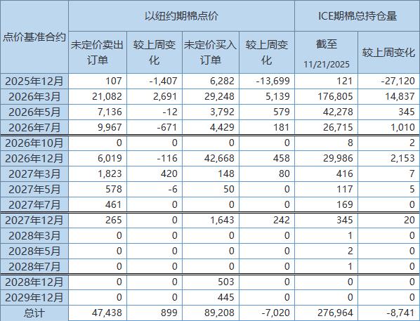 所有期棉合約點價未定價賣出訂單共47438手,較前周增加899手。