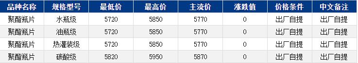華東聚酯瓶片收于5770元/噸,漲跌值0元/噸,原油下跌,大宗商品整體回調(diào),聚酯瓶片工廠目前尚未出價(jià),局部貨源提貨緊張,市場(chǎng)重心僵持整理。12月貨源報(bào)盤5740-5790元/噸,局部略高5850元/噸,略低5650元/噸或期貨合約2601升水40-90,遞盤5620-5760元/噸。