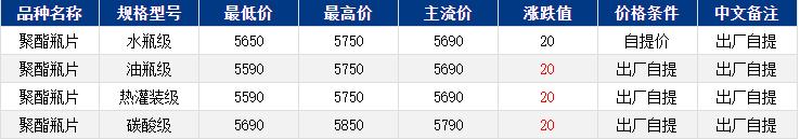 華東聚酯瓶片收于5690元/噸,漲跌值20元/噸,原油上漲,PX強(qiáng)勢(shì)上揚(yáng),成本推動(dòng)下,聚酯瓶片重心上揚(yáng)。12月貨源報(bào)盤5590-5750元/噸,局部略高5780元/噸或期貨合約2602貼水10至升水30,遞盤5640-5750元/噸,隨著原料價(jià)格上漲,低價(jià)貨源有所減少。