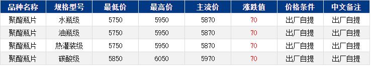 華東聚酯瓶片收于5870元/噸,漲跌值70元/噸,原料依然強勢,聚酯瓶片工廠報價上調(diào)40-50元/噸,重心繼續(xù)上揚,12-1月貨源報盤5750-5950元/噸或期貨合約2602平水至升水30,遞盤5830-5840元/噸。