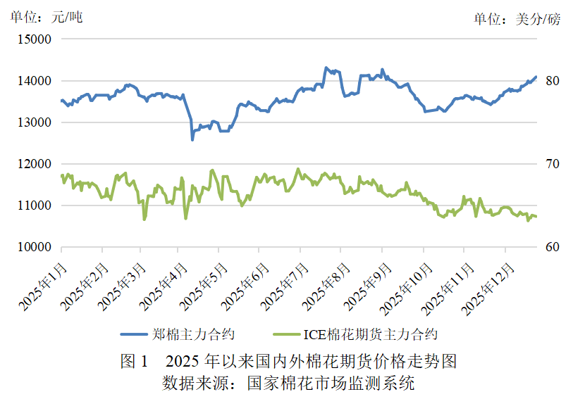 2025年收官之際,國(guó)內(nèi)宏觀面維持寬松基調(diào),擴(kuò)內(nèi)需促消費(fèi)政策持續(xù)發(fā)力,紡織消費(fèi)仍具韌性,市場(chǎng)情緒總體積極;國(guó)際市場(chǎng)近期主產(chǎn)國(guó)出口提速及南半球植棉面積下降預(yù)期對(duì)外棉價(jià)格底部形成支撐??傮w看,棉價(jià)走勢(shì)謹(jǐn)慎樂觀。下年初需重點(diǎn)關(guān)注國(guó)內(nèi)新年度關(guān)稅配額發(fā)放、北半球棉花種植意向變化情況,另外,在國(guó)際貿(mào)易壁壘升級(jí)等不確定因素影響下,不排除出現(xiàn)階段性回調(diào)壓力。