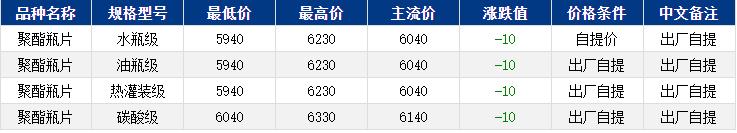 華東聚酯瓶片收于6040元/噸,漲跌值-10元/噸,聚酯負荷下滑,施壓原料端。成本支撐一般,聚酯瓶片重心略有下滑。1-2月貨源報盤5990-6070元/噸,局部略低略高或期貨合約2603升水10至40,遞盤6000-6040元/噸。下游買氣偏弱,零星低價遞盤。品牌價差較大,持貨商出貨為主。