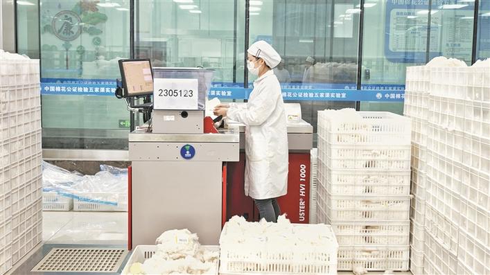1月18日,在中國棉花公證檢驗五家渠實驗室,工作人員進行棉花公檢相關(guān)操作。自2025年10月棉花公證檢驗工作啟動以來,該實驗室持續(xù)推動公檢技術(shù)升級,抓好樣品檢測、數(shù)據(jù)校準、結(jié)果審核全流程管理,以專業(yè)高效的檢測能力筑牢棉花質(zhì)量防線。截至目前,該實驗室累計完成8498批157.503萬包棉花檢驗工作,檢驗總量超36萬噸。