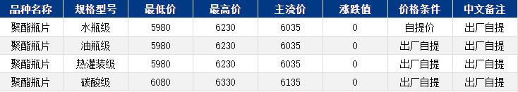 華東聚酯瓶片收于6035元/噸,漲跌值0元/噸,商品情緒偏弱,聚酯瓶片工廠部分維穩(wěn),重心僵持整理。1月貨源報盤6000-6060元/噸,局部略高6230元/噸,略低5980元/噸。遞盤5980-6020元/噸,下游觀望心態(tài)濃厚,實單遞盤稀少。