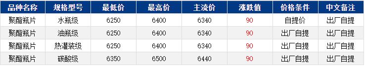 華東聚酯瓶片收于6340元/噸,漲跌值90元/噸,化工品維持上行態(tài)勢(shì),加之部分貨源流通緊張,聚酯瓶片重心繼續(xù)上揚(yáng)。1-2月貨源報(bào)盤6250-6400元/噸,遞盤6200-6280元/噸,遞盤以剛需買現(xiàn)貨為主,報(bào)遞盤價(jià)差較大,交投清淡。