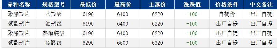 華東聚酯瓶片收于6220元/噸,漲跌值-100元/噸,美伊局勢(shì)緩和,原油、原料價(jià)格大幅下挫,聚酯瓶?jī)r(jià)格隨之下滑。2月貨源報(bào)盤6190-6400元/噸或期貨合約2604升水40-60,遞盤6100-6180元/噸;春節(jié)臨近,加之市場(chǎng)回調(diào)通道內(nèi),實(shí)單遞盤零星,觀望情緒濃厚。