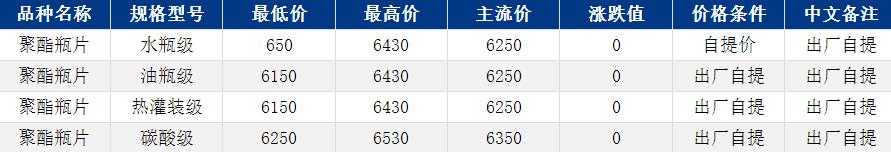 華東聚酯瓶片收于6250元/噸,漲跌值0元/噸,原油震蕩偏弱,支撐乏力?,F(xiàn)貨流通緊張,逸盛工廠基差上調10元/噸,重心僵持整理。2月貨源報盤6150-6430元/噸,遞盤6130-6300元/噸;3月貨源報盤6180-6400元/噸,遞盤6130-6160元/噸。