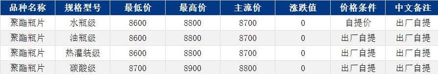 華東聚酯瓶片收于8700元/噸,漲跌值0元/噸,原料明顯回調,支撐不足。然而聚酯瓶片流通貨源緊張,工廠集體暫時封盤,重心僵持整理。部分持貨商報盤8600-8800元/噸,無實單遞盤。下游及貿(mào)易商提貨為主,交投清淡。