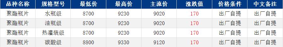 華東聚酯瓶片收于9020元/噸,漲跌值170元/噸,原油、原料上漲,成本推動(dòng),聚酯瓶片重心上揚(yáng)。工廠報(bào)價(jià)上調(diào)150元/噸左右,3月貨源報(bào)盤8700-9230元/噸,或期貨合約2605升水200-300,未見實(shí)單遞盤。