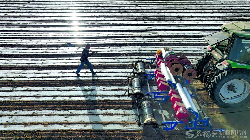 3月22日,兵團(tuán)第一師十團(tuán)十九連職工在播種棉花。春分過后,塔里木墾區(qū)搶抓農(nóng)時(shí),及早謀劃,廣袤田野成為農(nóng)業(yè)生產(chǎn)新裝備、新技術(shù)的“秀場”,該師200余萬畝棉田陸續(xù)開始播種。