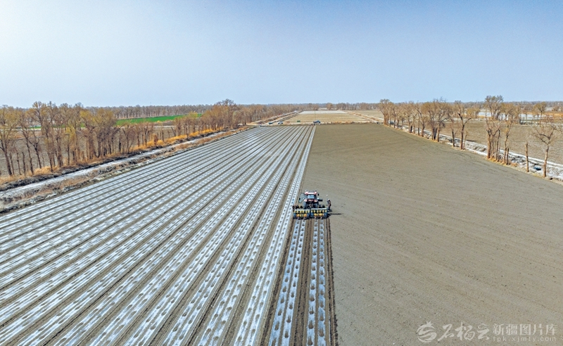 3月30日,加裝北斗衛(wèi)星導航系統(tǒng)的全自動鋪膜播種機在兵團第二師29團16連棉田里作業(yè)。眼下,兵團第二師棉花播種已全面展開,今年預計種植棉花70萬畝。