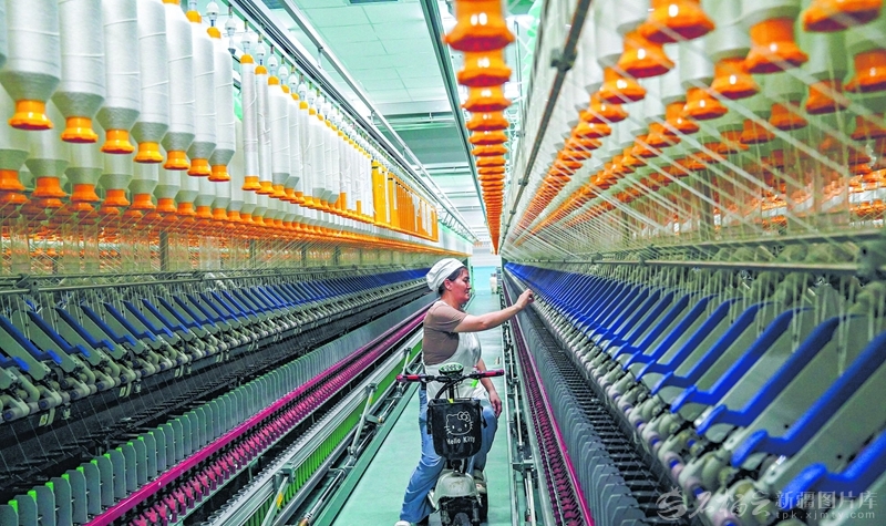 4月7日,工人在旭恒佳(烏蘇)紡織有限公司紡織車間作業(yè)。近年來,烏蘇市依托當(dāng)?shù)孛藁ㄙY源優(yōu)勢,大力發(fā)展棉紡產(chǎn)業(yè),有力促進當(dāng)?shù)馗挥鄤趧恿蜆I(yè)增收。