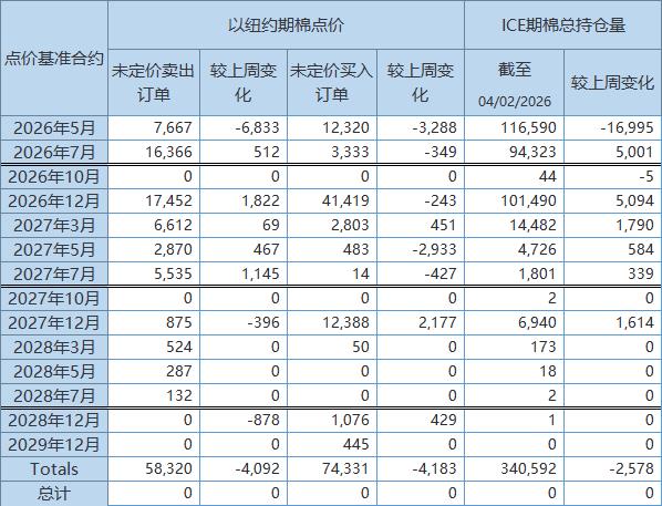所有期棉合約點價未定價賣出訂單共58320手,較前周減少4092手。