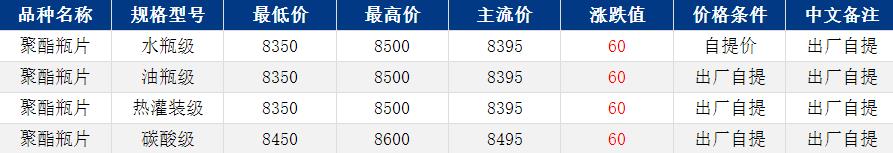 華東聚酯瓶片收于8395元/噸,漲跌值60元/噸,美伊談判無(wú)實(shí)質(zhì)性進(jìn)展,原油上漲,帶動(dòng)聚酯瓶片重心上揚(yáng)。4月貨源報(bào)盤8350-8500元/噸,部分略低7990-8300元/噸,或期貨合約2605升水550-700,遞盤8350-8400元/噸;由于缺少方向性指引,下游買氣偏弱。