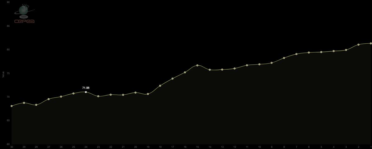以下為近30日走勢(shì)圖:(單位:美分/磅)