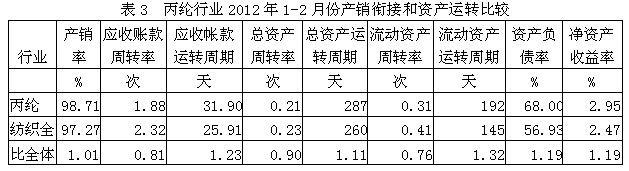 3丙綸行業(yè)產(chǎn)銷銜接和資產(chǎn)運(yùn)轉(zhuǎn)情況