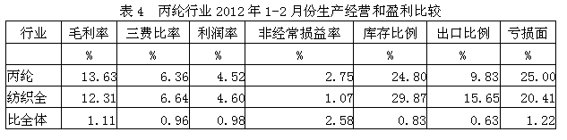 4丙綸行業(yè)生產(chǎn)經(jīng)營和盈利狀況