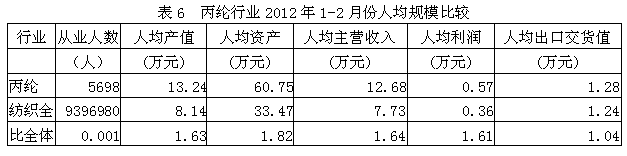 6丙綸行業(yè)人均規(guī)模比較
