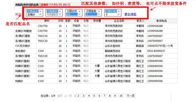 紗線采購(gòu)的“匹配”供應(yīng)商頁(yè)面