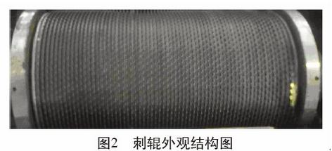 制樣機的開松作用主要是由刺輥和喂給羅拉這個開松單元來完成的,所以刺輥的合理設(shè)計顯得尤為重要,是該制樣機設(shè)計的關(guān)鍵,外觀結(jié)構(gòu)如圖2所示。