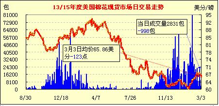 地區(qū) 陸地棉現(xiàn)貨交易價(jià)格 現(xiàn)貨交易量(包)