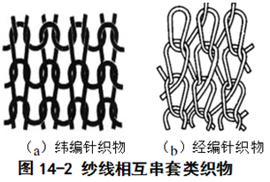 紗線相互串套形成針織物,一般分經(jīng)編針織物和緯編針織物兩類。