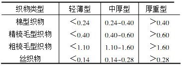 以每平方米克重計(jì)算,分為輕薄型織物、中厚型織物和厚重型織物。