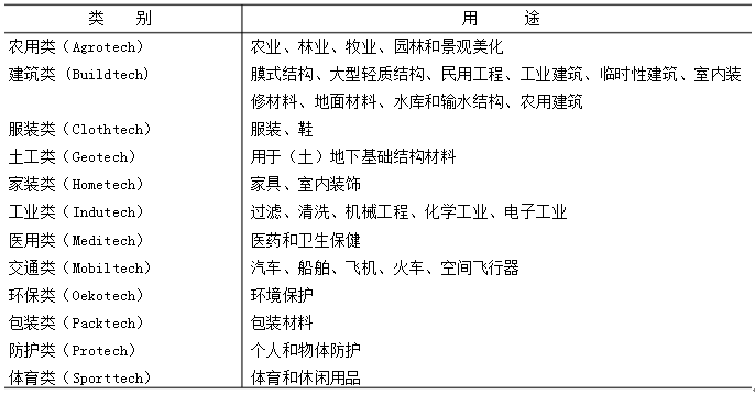 產(chǎn)業(yè)用紡織品的12個(gè)類別: