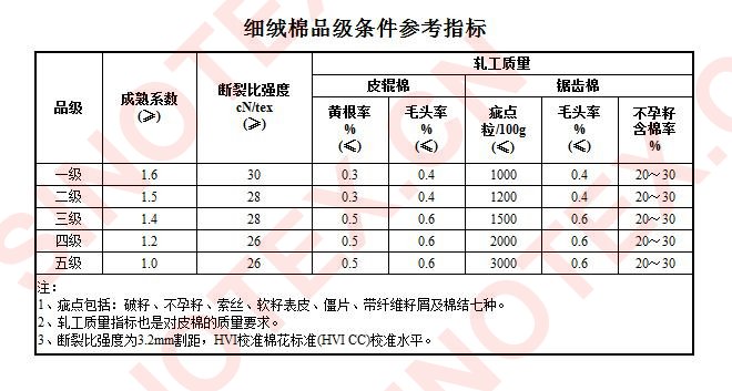 細(xì)絨棉品級(jí)條件參考指標(biāo)