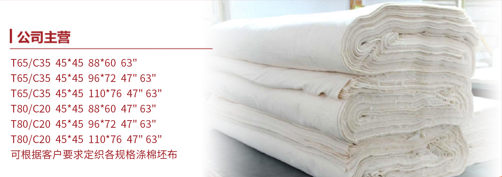 公司成立于1996年,注冊資本500萬元,占地40畝,現(xiàn)有員工300余人,現(xiàn)有有梭織機500臺,*新日發(fā)噴氣織機96臺,*新GA310漿紗機,紗錠4萬枚,主要生產(chǎn)T/C 80/20 45支、T/C 65/35 45支滌棉紗和133X72、110X76、96X72、88X64、72X50等各種規(guī)格滌棉布,年產(chǎn)量可達(dá)3000萬米,可根據(jù)客戶要求定織特殊規(guī)格品種,并可承接半漂,漂白,染色,印花訂單。