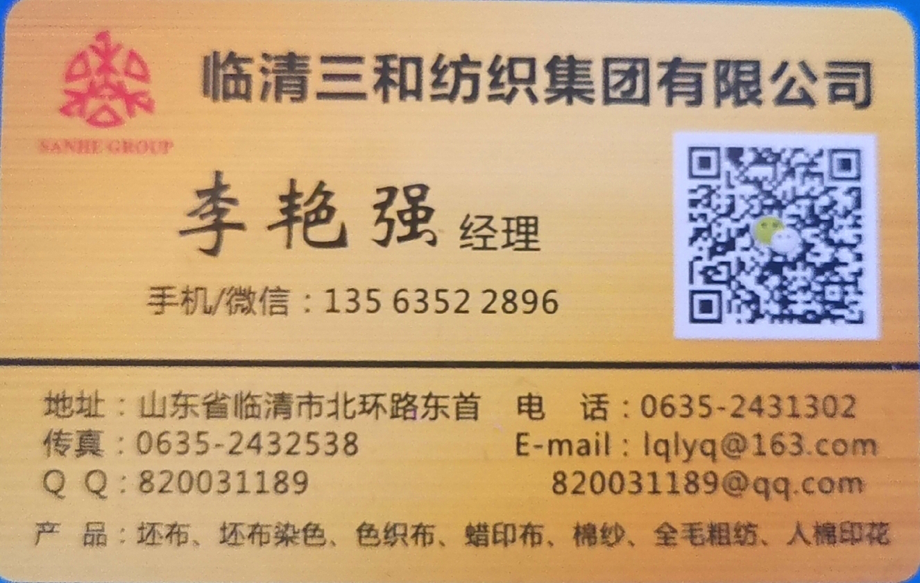 臨清三和紡織集團有限公司(山東省臨清市大眾北路1050號)企業(yè)占地面積2100畝,建筑面積76萬平方米,總資產(chǎn)62.1億元。擁有60萬紗錠(緊密紡、緊賽紡、包含44套2.0萬頭氣流紡機);7600臺織布機;70條蠟染印花生產(chǎn)線;2條色織布生產(chǎn)線;6條人棉印花生產(chǎn)線; 投資4億元,配置國內(nèi)一流設備,打造原毛染色、紡紗、后整等全產(chǎn)業(yè)鏈;1座11萬KW的自備發(fā)電廠;擁有自己的四星級賓館、酒店;職工15000人.世界*大的蠟染布生產(chǎn)基地,月產(chǎn)蠟布400個貨柜。