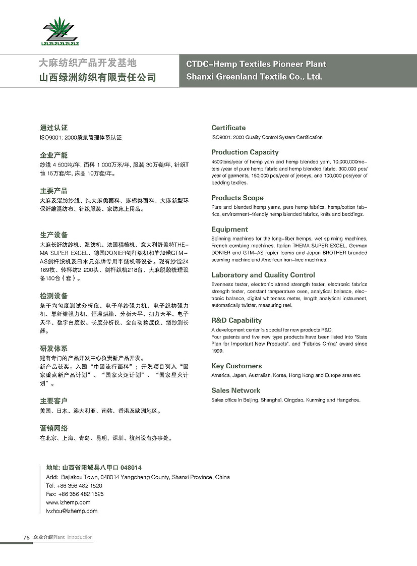 山西綠洲紡織有限責(zé)任公司銷售部