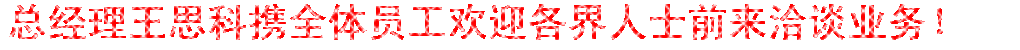 公司經(jīng)理王思科攜公司的全體員工愿于各界朋友真誠(chéng)合作共同發(fā)展,竭誠(chéng)歡迎廣大新老客戶親臨我公司考察指導(dǎo)工作,洽談合作項(xiàng)目!再次向協(xié)同本公司發(fā)展的廣大客戶,單位致以*誠(chéng)摯的感謝!