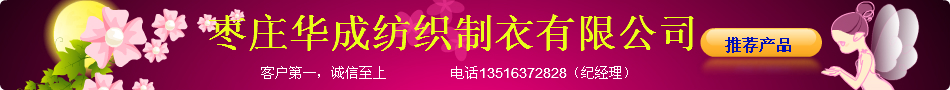 棗莊華成紡織制衣有限公司是一家紡織服裝企業(yè),是經(jīng)國家相關(guān)部門批準(zhǔn)注冊的企業(yè)。主營服裝、布料,公司位于中國山東棗莊市棗莊市經(jīng)濟(jì)開發(fā)區(qū)長江五路五號。棗莊華成紡織制衣有限公司本著“客戶*,誠信至上”的原則,與多家企業(yè)建立了長期的合作關(guān)系。熱誠歡迎各界朋友前來參觀、考察、洽談業(yè)務(wù)。公司經(jīng)營管理理念先進(jìn),生產(chǎn)經(jīng)驗豐富,人力資源優(yōu)良,產(chǎn)品質(zhì)量過硬,深受廣大客戶好評,產(chǎn)品暢銷全國各地及意大利,東南亞,歐美