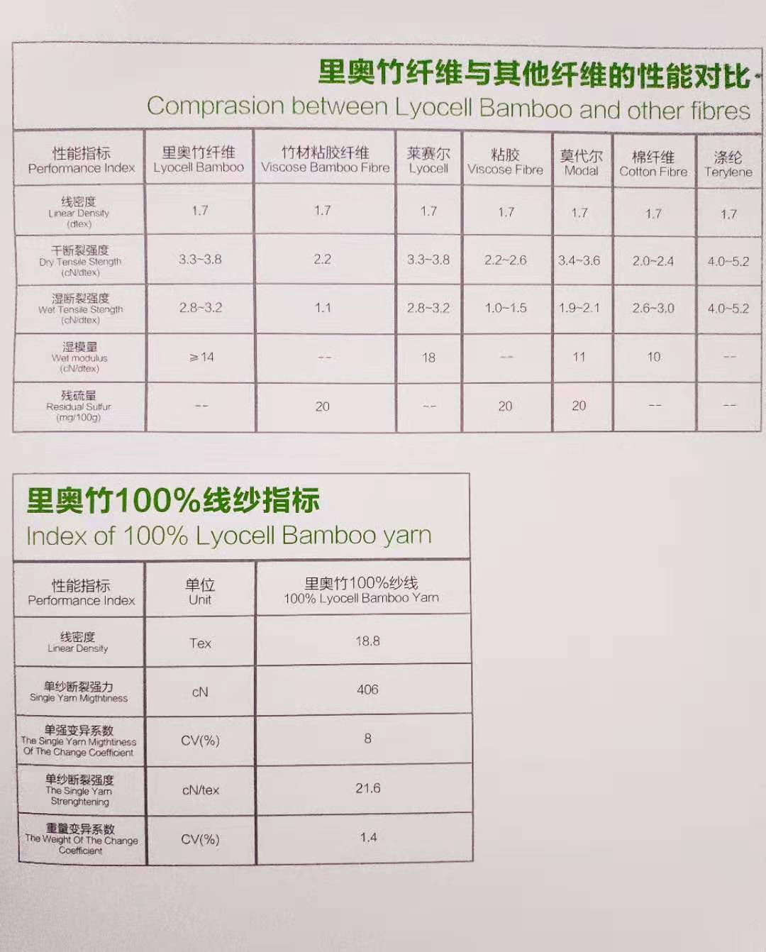 里奧竹纖維:百分百竹漿制作,使用高濕模量溶劑法的生產(chǎn)工藝,生產(chǎn)過程中環(huán)保健康,廢水可循環(huán),纖維本身可以生物降解。各方面均領(lǐng)先普通竹纖維指標(biāo),纖維性能優(yōu)異。在紡織印染過長(zhǎng)中體現(xiàn)出更好的可紡性和優(yōu)秀的著色能力,顏色飽滿鮮艷。由于本身具備竹纖維的防螨抑菌和天絲一般的手感光澤,擁有專利技術(shù),也被成為竹天絲。