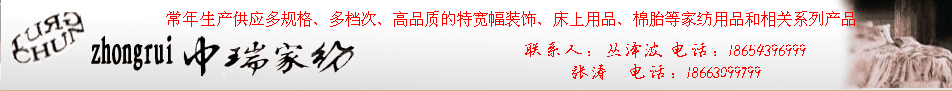 濱州市中瑞家紡有限公司擁有360型噴氣織機(jī)、家紡生產(chǎn)線、驗(yàn)布機(jī)、疊布機(jī)等全套先進(jìn)的生產(chǎn)、檢驗(yàn)及整理設(shè)備;具備開發(fā)和生產(chǎn)多規(guī)格、多檔次、高品質(zhì)的特寬幅裝飾、床上用品、棉胎等家紡用品和相關(guān)系列產(chǎn)品的能力,可滿足國(guó)內(nèi)外不同客商的需求。我公司設(shè)備先進(jìn)、各類配套設(shè)施齊全、技術(shù)力量雄厚、產(chǎn)品質(zhì)量控制嚴(yán)格、物流供貨方便及時(shí),各類產(chǎn)品自投放市場(chǎng)以來深受國(guó)內(nèi)外客商的喜愛。我公司積極參與行業(yè)內(nèi)的縱向聯(lián)合,與濱州魏橋.華紡 愉悅家紡 紡織印染有限責(zé)任公司等企業(yè)建立了友好的合作關(guān)系。