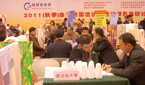 【錦橋紡織網(wǎng)青島11月8日訊】今天上午,由錦橋紡織網(wǎng)主辦、青島跨國(guó)采購(gòu)促進(jìn)中心協(xié)辦的2011(秋季)會(huì)員供需洽談會(huì)暨紡織形勢(shì)研討會(huì)在青島國(guó)際會(huì)展中心隆重開(kāi)幕。50余家本網(wǎng)會(huì)員企業(yè)和貿(mào)易企業(yè)的代表前來(lái)參加此次洽談會(huì)。中國(guó)國(guó)際貿(mào)易促進(jìn)委員會(huì)舉辦的“2011年第十六屆中國(guó)青島國(guó)際面輔料、紗線(xiàn)采購(gòu)交易會(huì)”也同期開(kāi)幕,全球近千家優(yōu)秀供應(yīng)、采購(gòu)商云集島城。 與會(huì)人員合影 此次會(huì)議是在棉花價(jià)格暴跌、內(nèi)外需求減緩、棉紡織行業(yè)持續(xù)低迷的情況下召開(kāi)的,因此受到紡織企業(yè)的高度關(guān)注。國(guó)內(nèi)主要知名企業(yè)武漢裕大華、鄭州成林、大海集團(tuán)、青島綠州、林茨南京、濱州森泰、聊城東潤(rùn)、冠星集團(tuán)等都派出代表參加洽談會(huì)和研討會(huì)。相信此次會(huì)議一定會(huì)幫助紡織企業(yè)深入了解國(guó)內(nèi)外紡織市場(chǎng)形勢(shì),多方面拓展市場(chǎng)渠道,加深會(huì)員之間的合作交流。 洽談會(huì)現(xiàn)場(chǎng) 轉(zhuǎn)載本網(wǎng)專(zhuān)稿請(qǐng)注明:"本文轉(zhuǎn)自錦橋紡織網(wǎng)" |