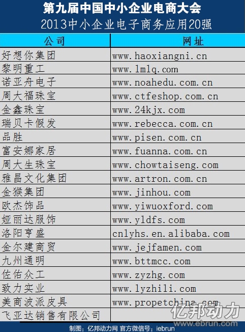 第九屆中國中小企業(yè)電商大會獲獎網站名單