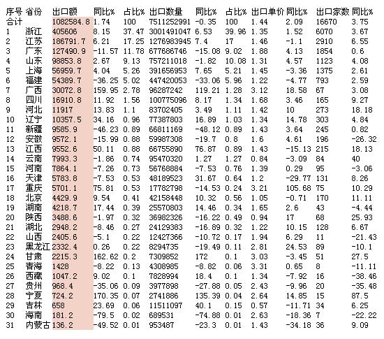 2014年1-3月面料出口省市統(tǒng)計(jì)