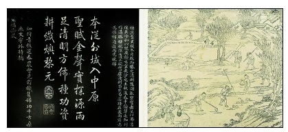 清代御制棉花圖,其配詩曰:本從外域入中原,圣賦金聲實探源。雨足清明方佈種,功資耕織燠黎元。