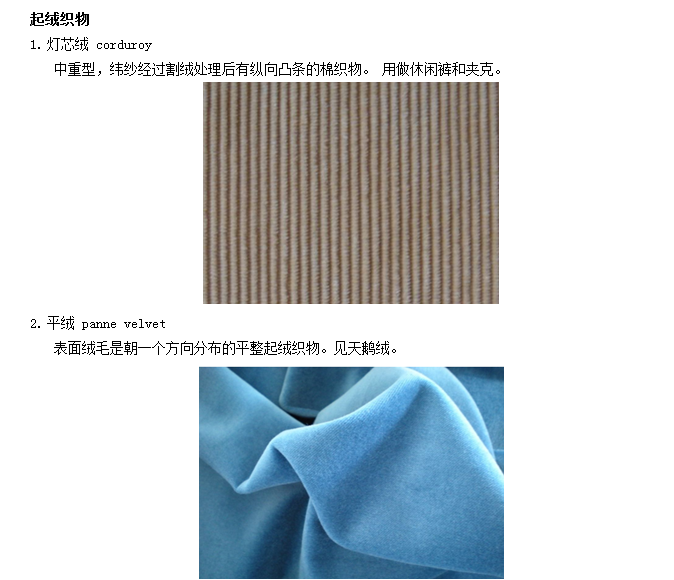 常見織物一覽:拉絨、經(jīng)絨、起絨織物