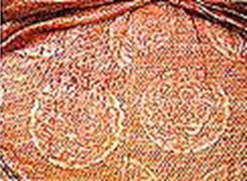 詳細(xì)介紹:清代乾隆年間的一種起絨絲,棉交織物,中國新疆回族傳統(tǒng)織物,綠色長條花紋瑪什魯布絨被的起絨方法與漳絨相仿,屬起毛桿經(jīng)起絨類型,采用扎經(jīng)印染工藝又具有新疆維吾爾族的和田綢特點(diǎn)。經(jīng)線采用家蠶絲,緯線為棉紗,經(jīng)密為54根/cm,緯密為24根/cm,經(jīng)線扎染成藍(lán),白,綠,紅,黃五色,并由于纖維毛細(xì)管的作用,彩條間帶有別致的無級層次色暈?!?br />