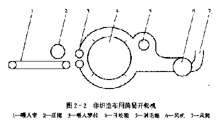 1.混合、開松:通過機(jī)械打擊和撕扯作用,對(duì)不同性能和品種的纖維原料進(jìn)行混合、開松。非織造生產(chǎn)以化纖原料居多,天然纖維較少,因此主要進(jìn)行混合與開松。