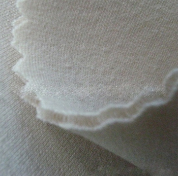 另一種三層保暖面料實際上針織“空氣層”組織面料,表層是短纖紗,里層為超細(xì)聚酯纖維不倒絨,中間層是滌綸長絲或者短纖紗作為表里兩者的連接線,在表里兩層間還可添加無捻長絲束作為襯墊紗提高織物保暖性。這類產(chǎn)品價格相對較低,不倒絨覆蓋于皮膚形成靜止空氣層,所以保暖效果尚可,但也因此透氣性和吸濕性方面稍差。