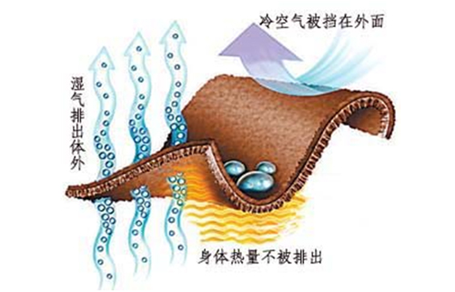 穿衣能保暖是通過降低熱傳導(dǎo)來實現(xiàn)的,衣服緩沖了冷空氣與體表熱空氣之間的對流,從而在保存了熱量。因此,要穿衣保暖,就得盡可能地減少熱傳導(dǎo)。衣服中的纖維實際上是纖維、空氣和水的混合物,空氣是可利用材料中導(dǎo)熱性最差的,而水的導(dǎo)熱性則較好。從這個角度出發(fā),外衣應(yīng)選擇防風(fēng)性能好、有填充物的羽絨服或厚棉衣,中層衣服應(yīng)選擇吸濕性強(qiáng)、蓬松的羊毛、羊絨、純棉毛衣,內(nèi)衣則選擇吸濕排汗性強(qiáng),柔軟貼身的衣服,在衣服和人體微環(huán)境中保留更多的靜止空氣,導(dǎo)走多余水分,才能達(dá)到良好的保暖效果。