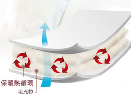 一種是典型意義上的三層保暖,面料和里料采用純棉或高含棉量的針織布料,中間夾有一層增加保暖性能的填充物。價格和保暖效果主要取決于填充物的成分和分量,填充羊絨的價格最高,保暖性也最好;填充羊毛的次之;填充多孔滌綸、腈綸的價格相對較低,雖不及羊絨羊毛但也有不錯的保暖性能。
