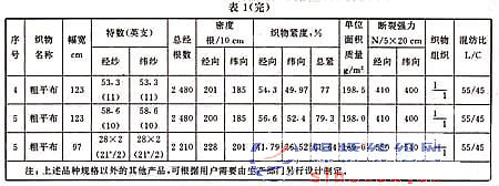3.2亞麻棉混紡本色布的代表性品種見(jiàn)表1。