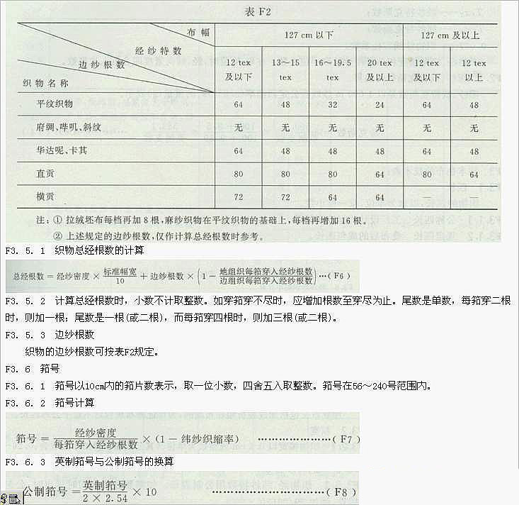 F3. 3. 1 織物經(jīng)、緯紗特數(shù)用公制表示。如需要公英制同時標(biāo)出時,公制特數(shù)在前,英制支數(shù)在后并加括號,例如29/29(20s×20s)。