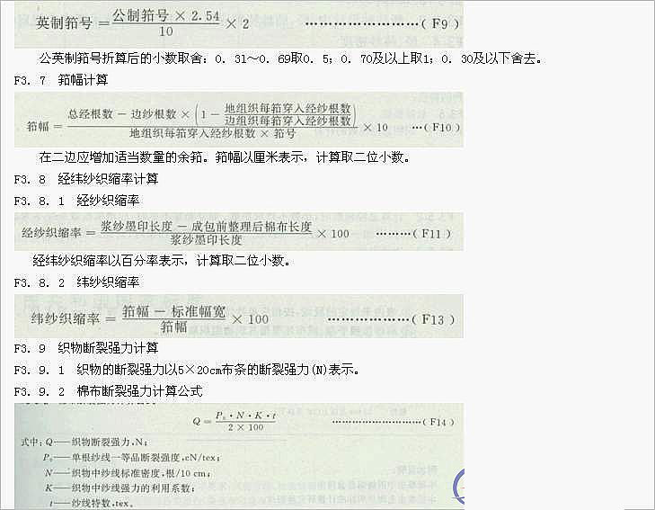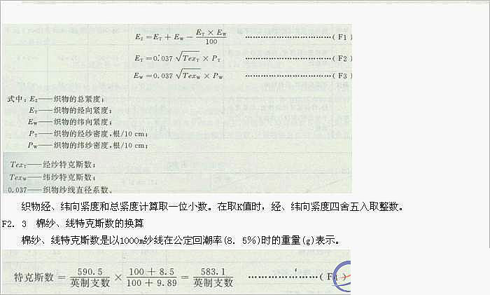 F3.4.1 織物的經(jīng)、緯紗密度以10cm內(nèi)經(jīng)、緯紗根數(shù)表示。在英制折算公制時,不足0.5根的舍去,超過0,5根不足1根的作0.5根 計。